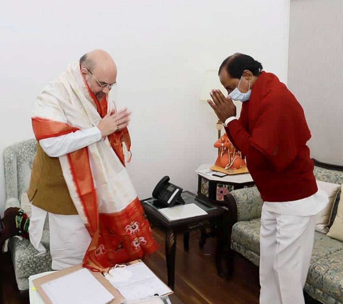The Chief Minister's Office (CMO) issued photographs of Rao's meetings with Shah and Shekhawat, but there was no statement on what was discussed.