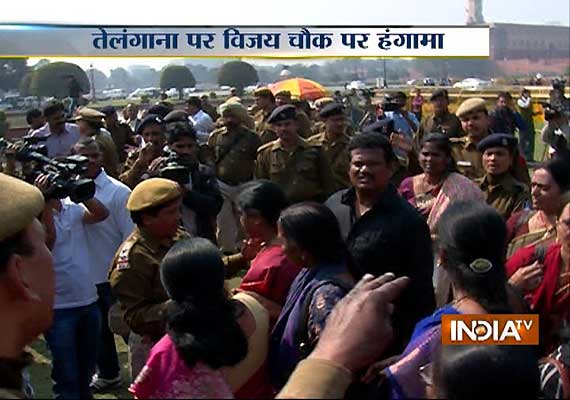 New Delhi: The drama it seems, is not just limited to inside the Lok Sabha. As groups of pro and anti Telangana supporters today clashed outside Parliament premises in Delhi.