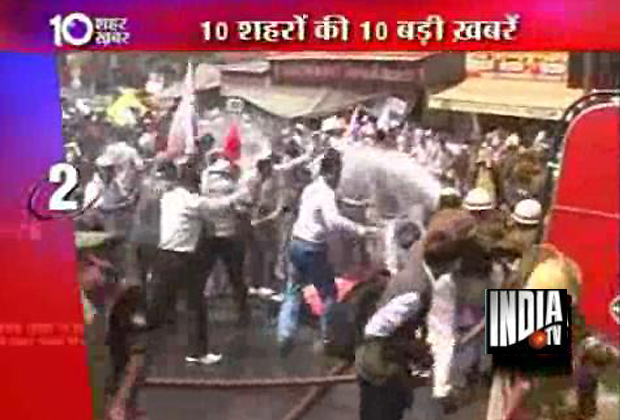 They were stopped by the police from proceeding and when the use of water cannons did not disperse them police resorted to baton charge, official sources said.
