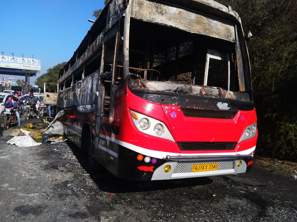 A private bus in Maharashtra's Thane engulfed in flames in the wee hours of Friday. The incident was reported near Ghodbunder check post, where all 25 passengers on the bus were safely rescued. The incident took place at around 6.30 am on a luxury bus travelling from Gujarat to Thane city in Maharashtra, chief of disaster management cell Santosh Kadam said.