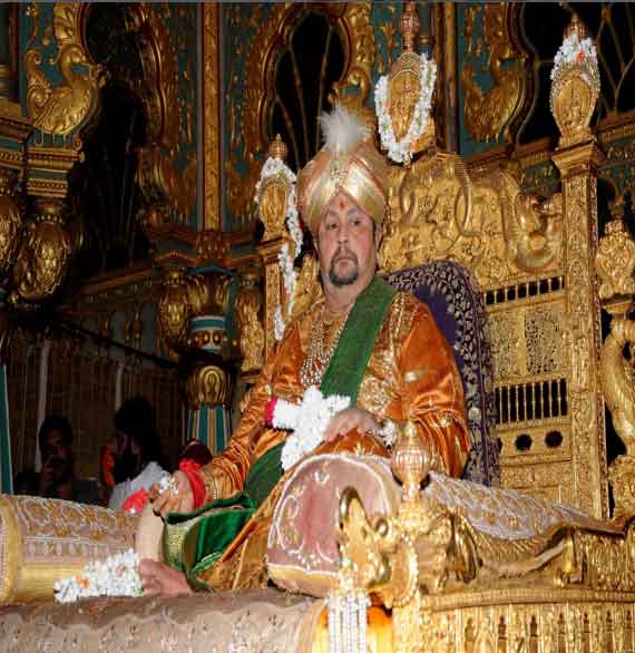 Earlier in the day, about 100,000 people from all over the old Mysore region thronged the palace to pay homage to Wodeyar as his body lay in the centre of the wedding hall in the palace since dawn after it was brought from Bangalore.