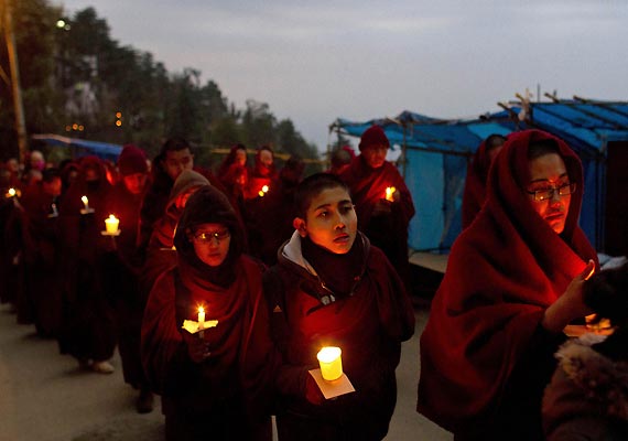 Dharamshala (HP): Tibetans living in-exile here on Monday night held a candle light vigil to mourn and express solidarity with monk's family who set himself on fire in Ngaba County in Tibet to protest against repressive policies of the Chinese government.