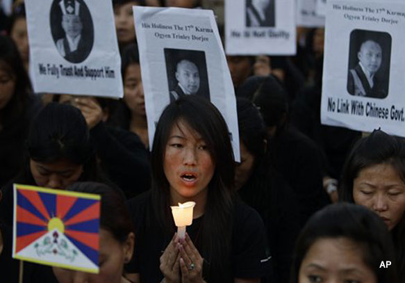 The Tibetans, including monks and nuns, marched 9 km to reach here from McLeodganj carrying Buddhist flags and portraits of Karmapa. They also chanted slogans and carried posters that read 'Karmapa is innocent. Let truth prevail'.