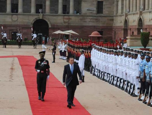 Abbott was accorded a ceremonial guard of honour at the forecourt of Rashtrapati Bhavan here. He was received by Modi at the lawns of Presidential house.