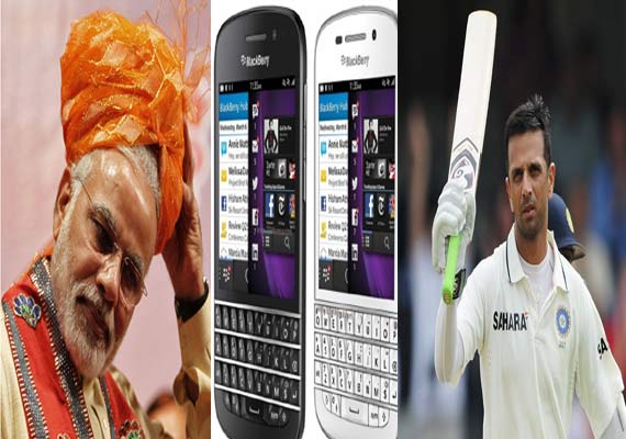 BJP's prime ministerial candidate Narendra Modi emerged the leader in the most searched news category (as well as politicians category), followed by BlackBerry phones, Rahul Dravid, Saina Nehwal and Vijay Mallya.