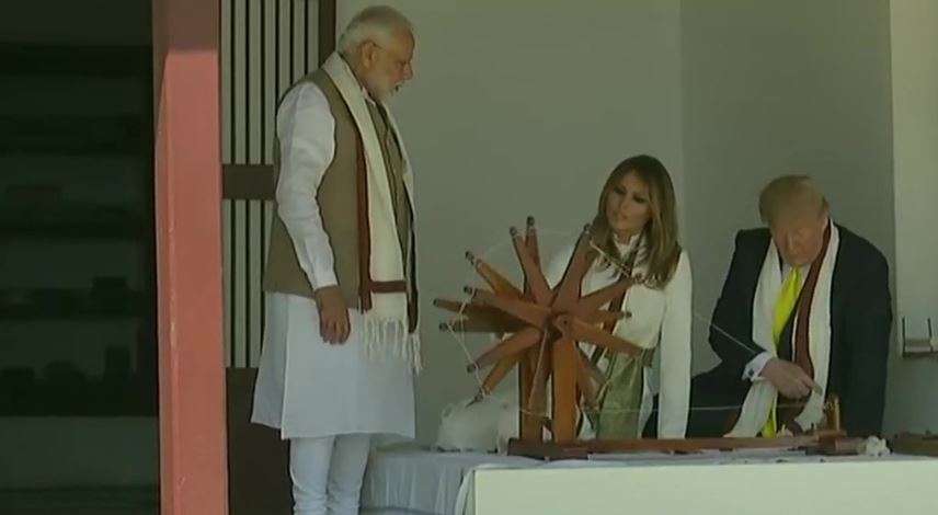 During his visit to Sabarmati Ashram, US President Donald Trump and his wife Melania Trump spun Mahatma Gandhi's Charkha. According to Ashram officials, Trump will visit the 'Hriday Kunj' and he will be gifted a coffee-table book containing 150 quotations of Gandhi.