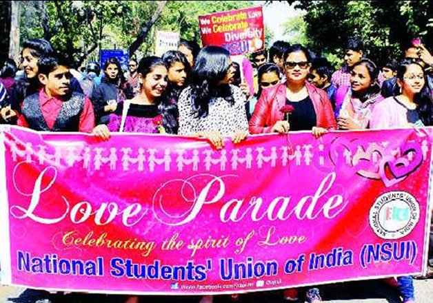 Another students' body, National Student's Union of India (NSUI) organized a ‘love parade' in Delhi University's North Campus on Friday to celebrate the spirit of love and voice against the moral policing outfits.