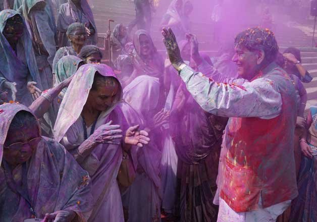 Ageing women helped by young widows let their hair down and to the beat of the dholak and the majeera, danced and threw marigold petals on each other as some overzealous ones smeared each other with gulal (dry colour). Bindeshwari Pathak, founder of the sanitation NGO also played Holi with the widows and billed the event as "one of the happiest days of my life."