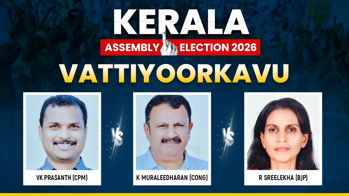 The 2026 Vattiyoorkavu Assembly election is shaping up to be a fiercely contested race, with CPM’s VK Prasanth vying for a win. He faces strong competition from R Sreelekha from BJP and K Muraleedharan from Congress, setting the stage for a close and dynamic political battle in the constituency.