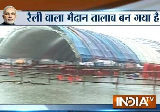 Varanasi: Heavy downpour has led to water logging in the ground where Prime Minister Narendra Modi is scheduled to address 'Vikas Sabha' in his parliamentary constituency here today, leaving officials worried.