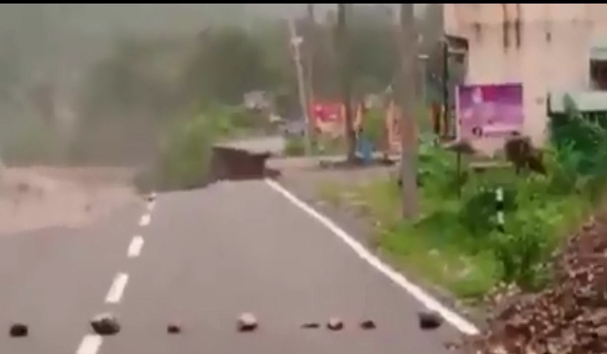 A road caved in and merged into the river on Friday, due to the incessant rainfall in Dehradun. Incessant rain in Dehradun for the last 48 hours has wreaked havoc because of which the Maldevata-Sahasradhara link road has been submerged in the river for several meters.