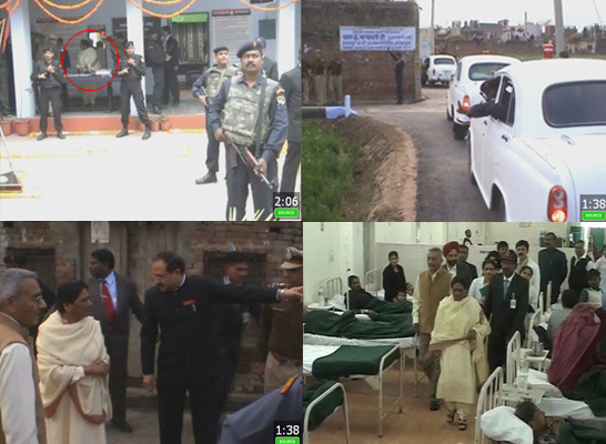 The chief minister visited the local school, which had been kept spic and span. Said Mayawati: "I checked the records of the local police station and am not happy. I am not happy with the condition of roads also and have given the officials three months time to rectify."