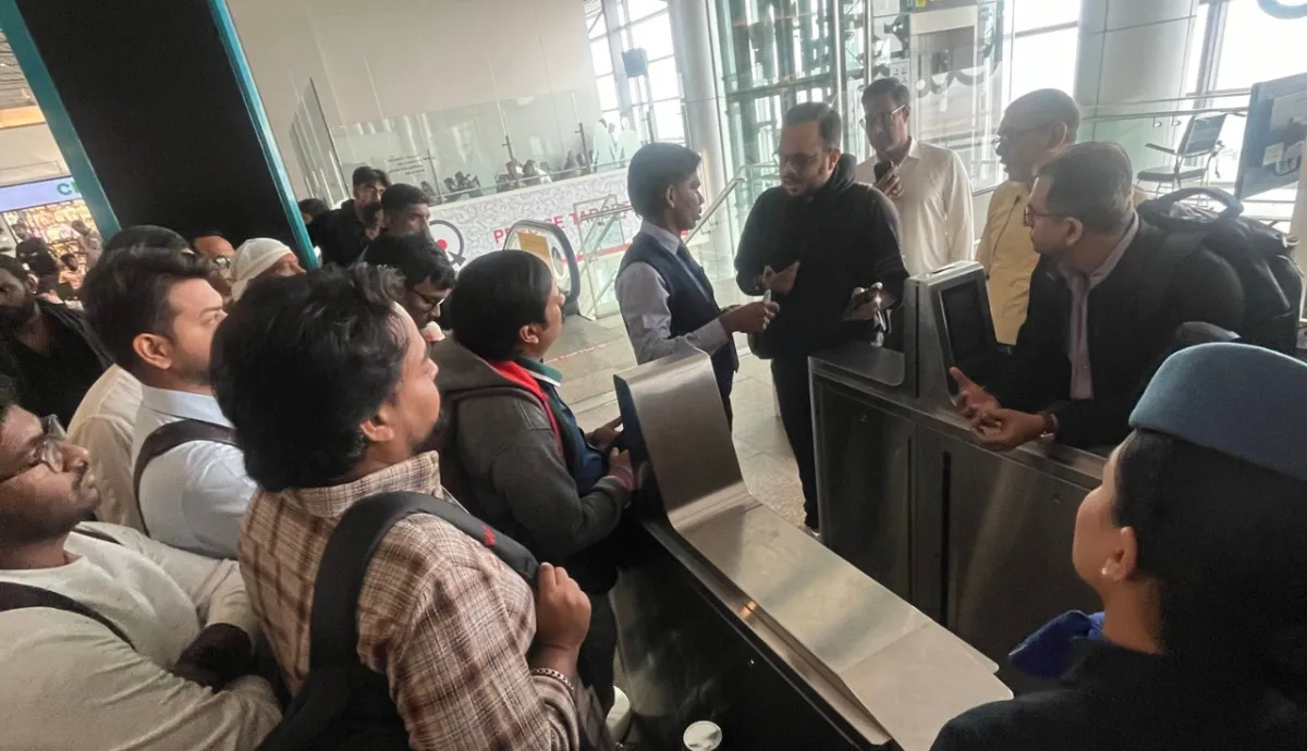 A video from the Hyderabad airport showed passengers crowded around a boarding gate, arguing with a ground staffer about the issue.