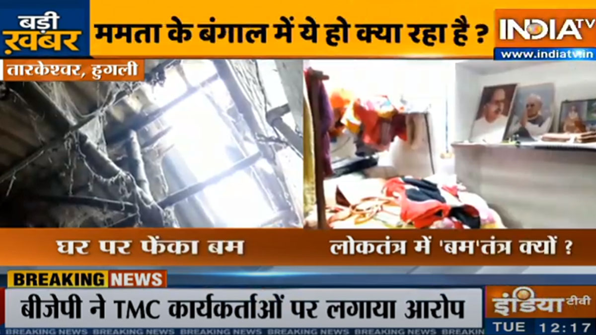At least three bombs were hurdled at a local BJP leader's house in Hooghly district of West Bengal on Monday night. The leader has been identified as Ajay Kumar Chakraborty.