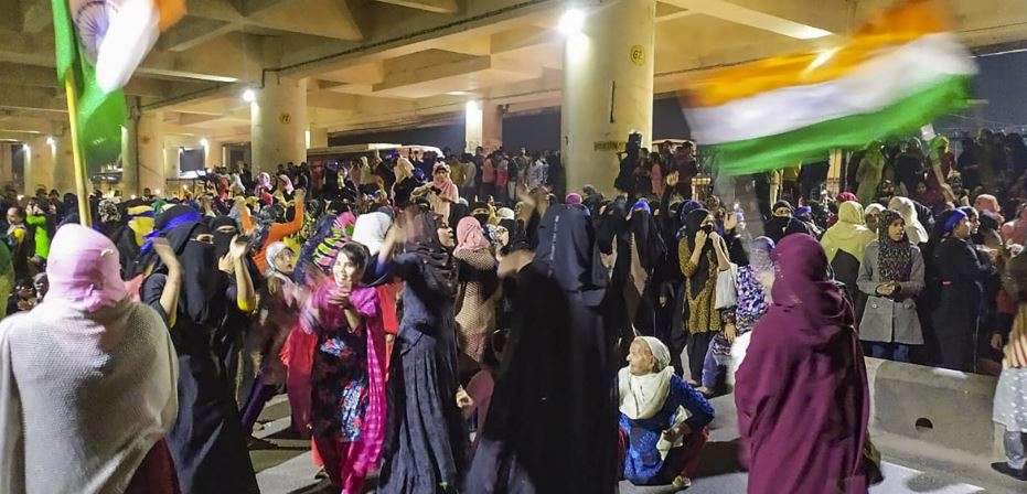 Women continue their protest against Citizenship Amendment Act (CAA) in Jaffrabad metro station area. The protest began late evening on Saturday continued even after midnight.