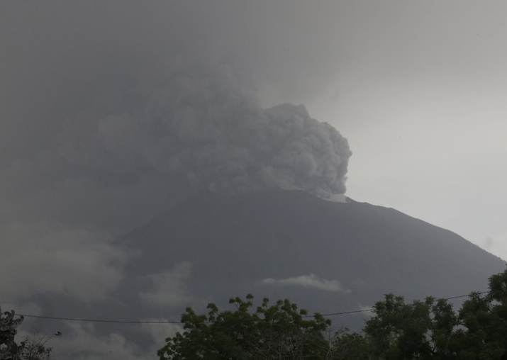 Mount Agung has been hurling ash thousands of meters into the atmosphere since Saturday, which had already forced the small international airport on the neighbouring island of Lombok to close as the plumes drifted east.
