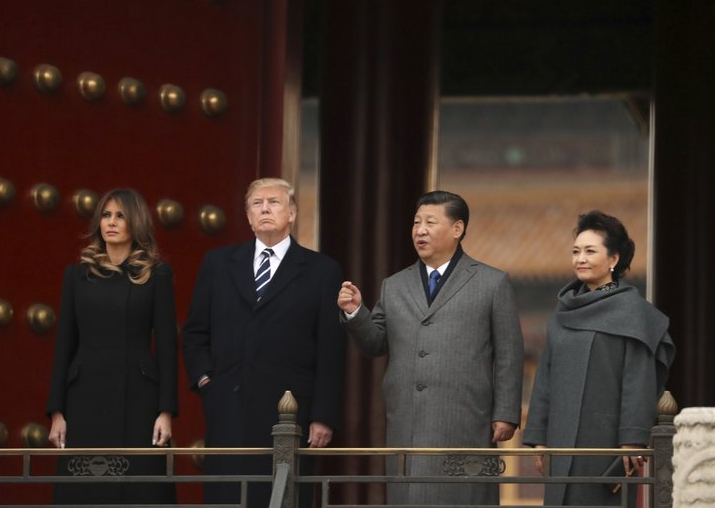 The president and first lady Melania Trump were greeted at the airport by dozens of children who waved U.S. and Chinese flags and jumped up and down. They sipped tea with Xi and his wife, Peng Liyuan, received a private tour of the Forbidden City, Beijing’s ancient imperial palace, including a performance by young opera students before dinner. Trump said afterward that he’s “having a great time” in China.