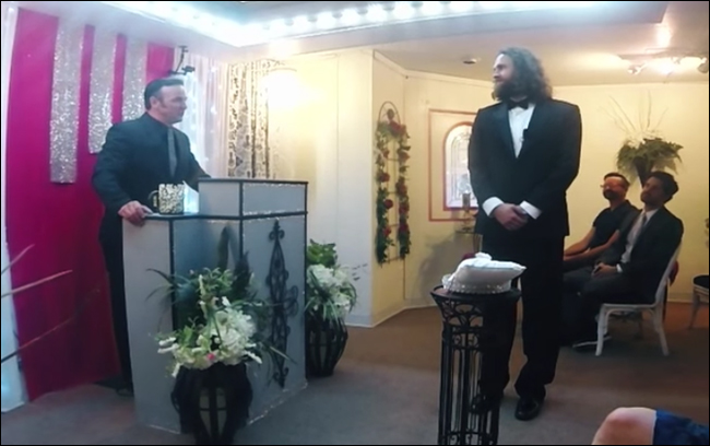 “Do you, Aaron, take this smartphone to be your lawfully wedded wife, and do you also promise to love her, honor her, comfort and keep her, and be faithful to her?” Michael Kelly owner of the Little Las Vegas Chapel told the groom.