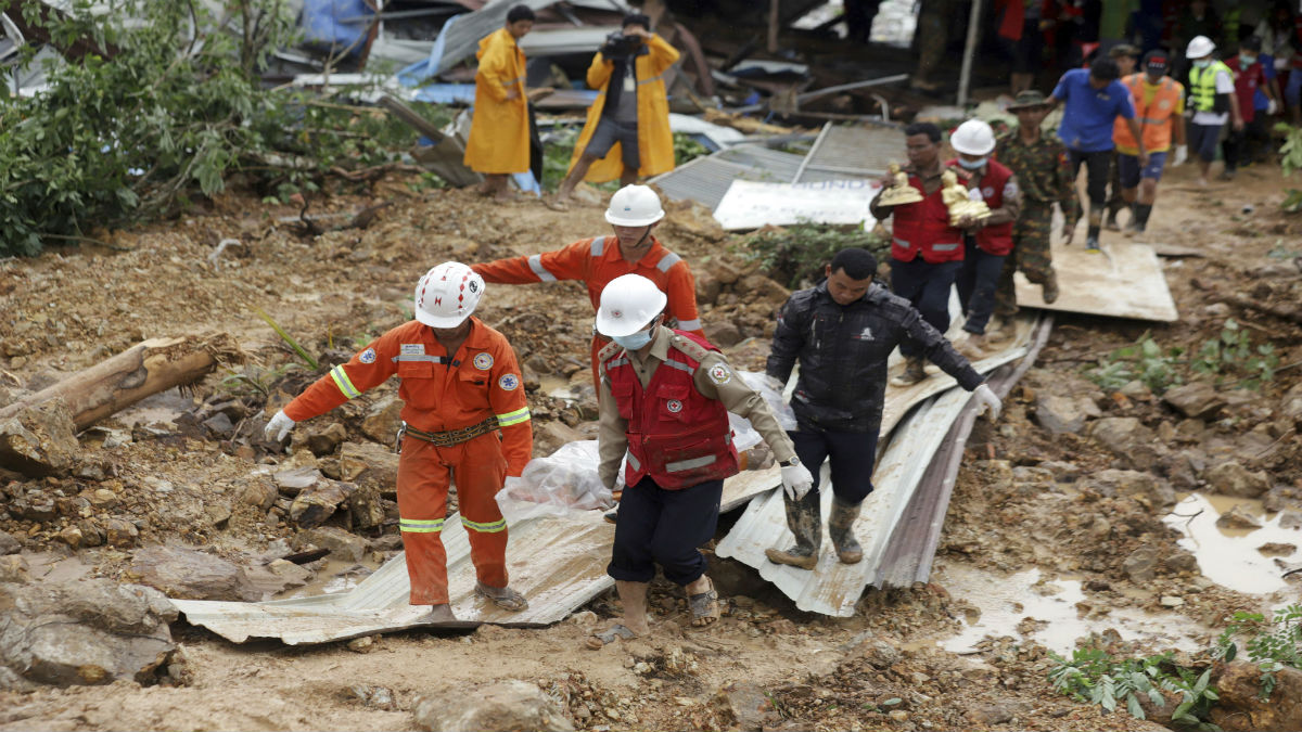 The mountainside of Ma-lat mountain collapsed due to the monsoon downpour at 7 a.m. on Friday. Residents, houses and vehicles were swamped away by the deluge of mud and rocks from the collapse.