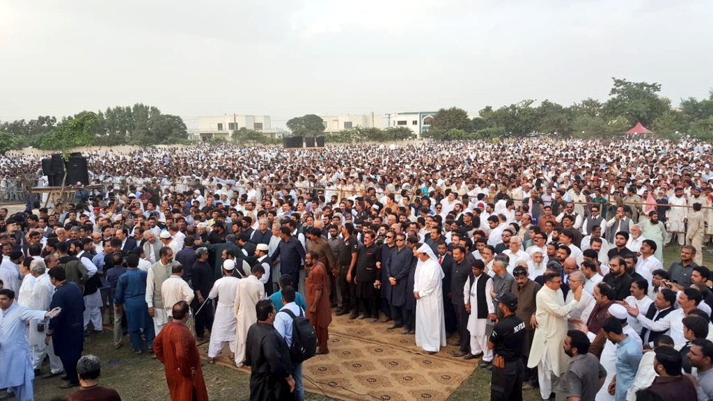 The leadership of the Pakistan Tehreek-e-Insaf including Punjab Governor Chaudhry Sarwar and National Assembly Speaker Asad Qaiser attended the funeral prayers.