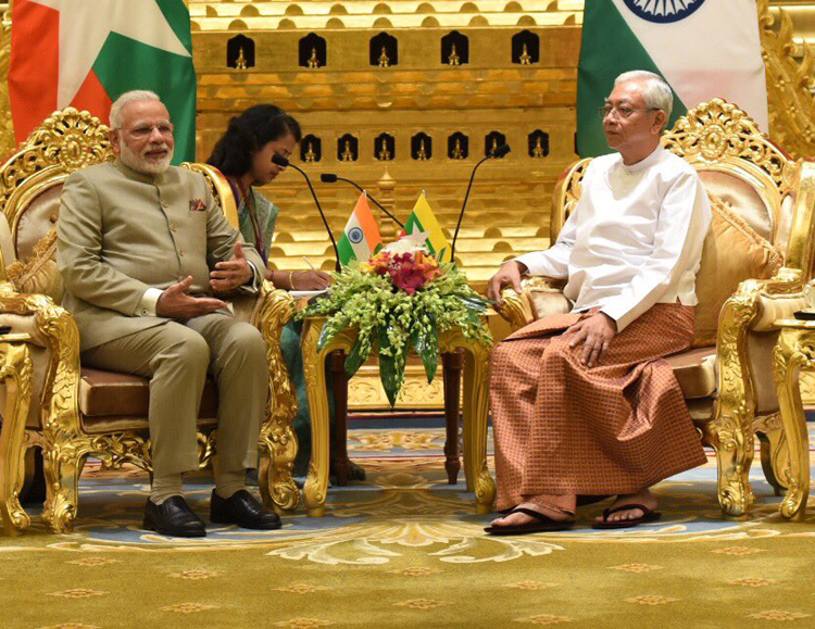 "'Act East' and 'Neighbourhood First' Policy. PM @narendramodi calls on President U Htin Kyaw, discusses steps to deepen historical relationship," he said in a tweet.