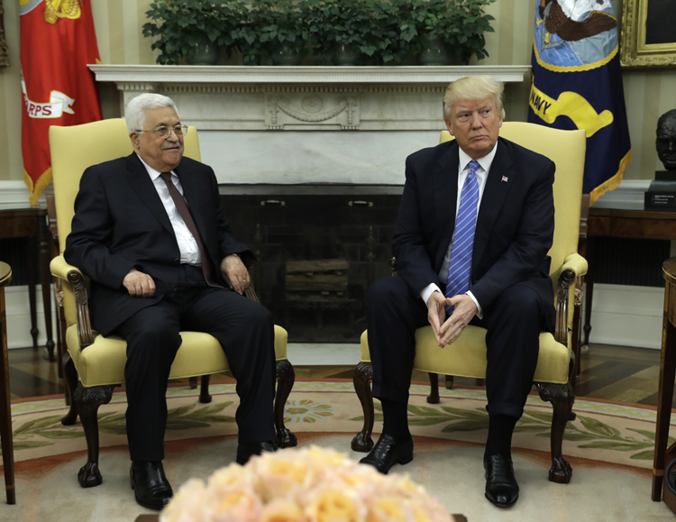 US President Donald Trump today met Palestinian President Mahmoud Abbas at the White House where he is believed to have pressed to end payments to families of Palestinians imprisoned in Israeli jails.