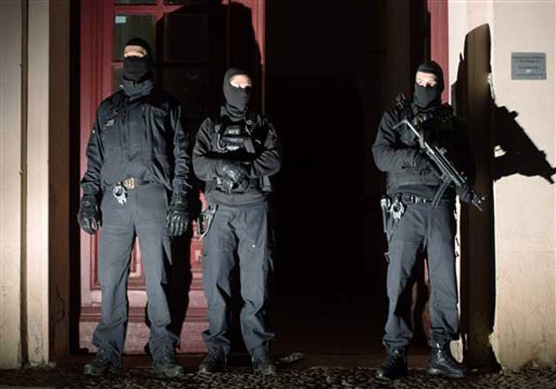 Berlin: Hundreds of Berlin police raided 11 residences at dawn Friday, taking two Turkish men into custody on suspicion they were recruiting fighters and procuring equipment and funding for the so-called Islamic State group in Syria.