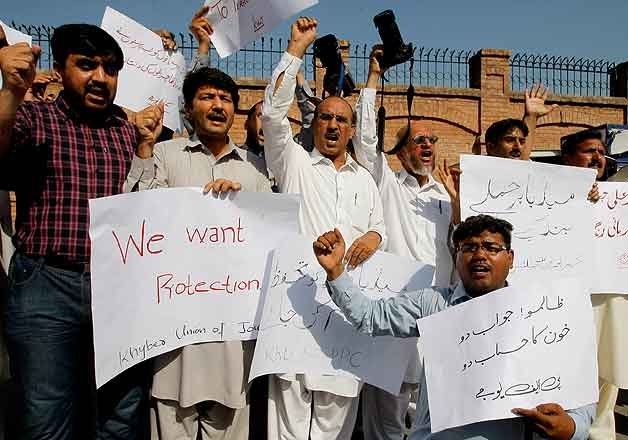 The second attack happened Wednesday morning. Feroz Shah, a deputy inspector-general of police, said gunmen on a motorcycle shot and killed journalist Aftab Alam as he stood outside his home. Alam previously worked with Geo TV.