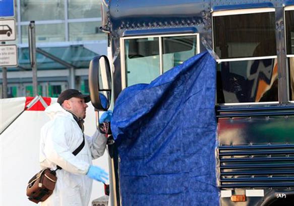 The attack came as the bus sat outside Terminal 2 at the airport, Frankfurt police spokesman Manfred Fuellhardt said.