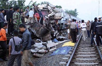 The accident occurred at a station in Petarukan, a city on the northern coast of Central Java province, at around 3 a.m. local timeas many passengers were sleeping, witnesses told TVOne.