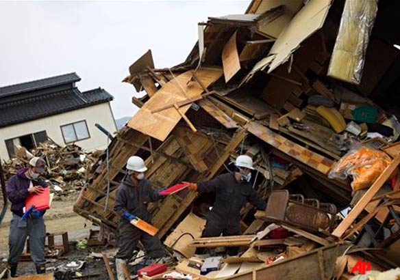 Earlier in the day, sirens wailed across Japanese cities and sombre ceremonies held in the memory of nearly 30,000 people killed or unaccounted for in the twin disaster that ravaged Japan's northeast last month.