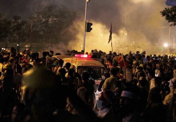 Islamabad: After night-long clashes here between anti-government demonstrators and security forces that left three people dead and about 450 others injured, the situation continued to be tense and uncertain even as the powerful Army Chief General Raheel Sharif summoned a meeting of corps commanders today.