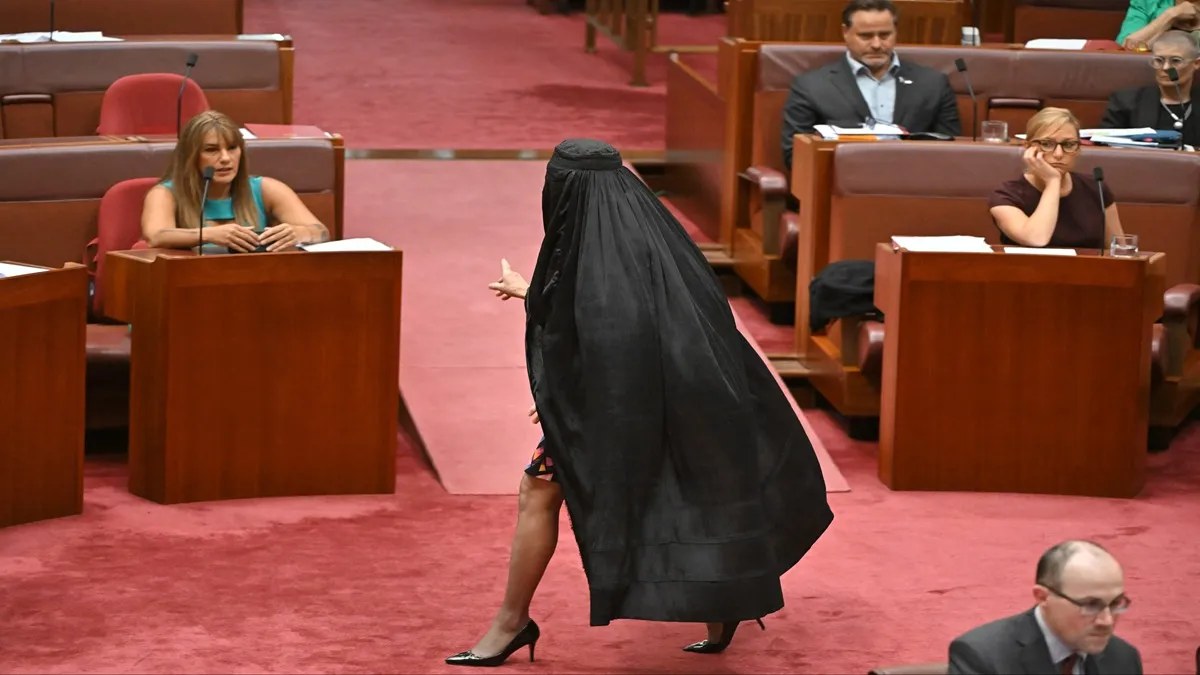 Hanson entered the chamber dressed in the full-body covering shortly after she was denied permission to introduce a bill to ban burqas and other face-covering clothing in public. This marks the second time she has worn a burqa in Parliament to support her campaign for a national ban. According to reports, her appearance triggered chaos inside the Senate. Proceedings were halted when she refused to remove the covering.