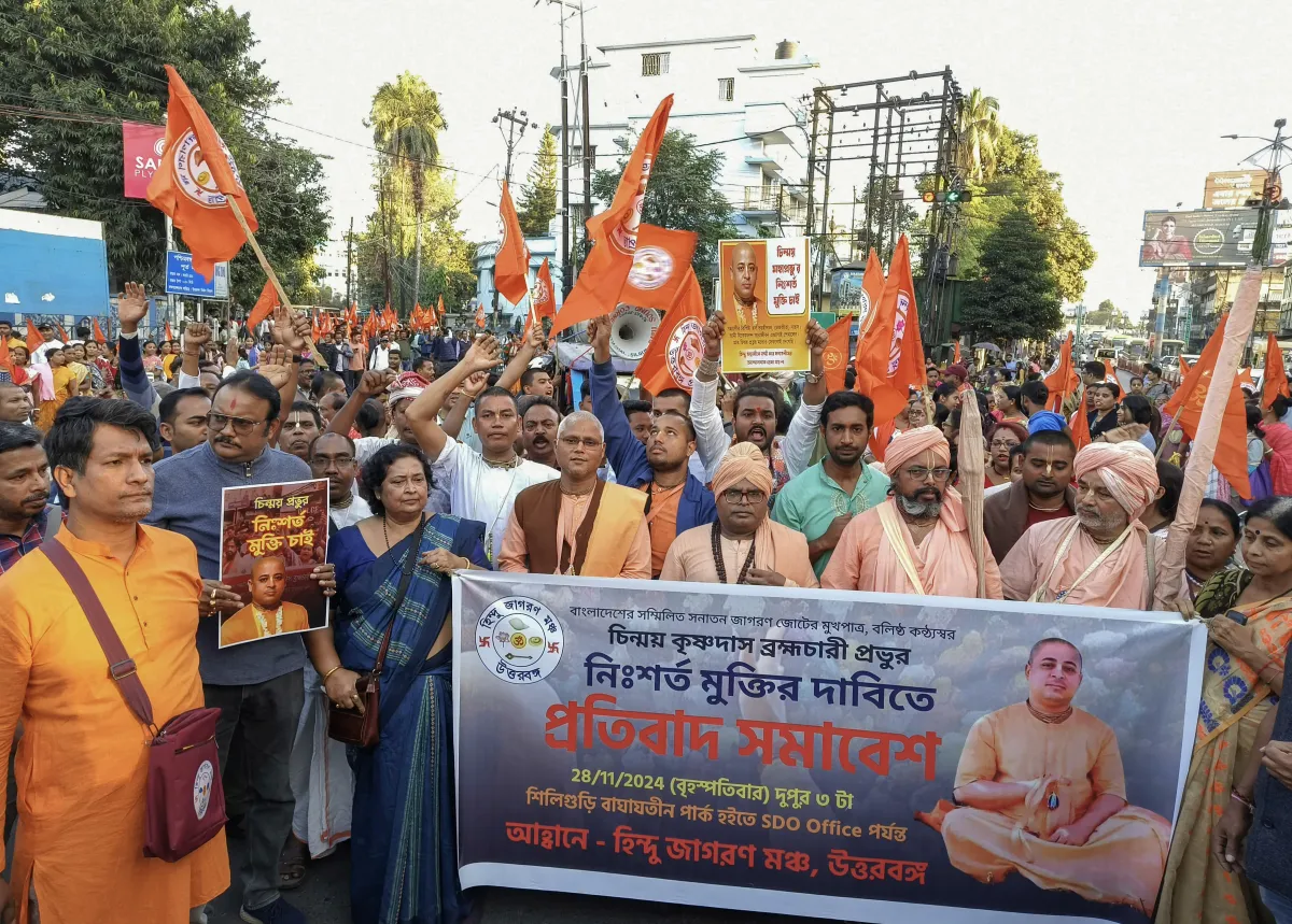 Das, a former ISKCON leader, was arrested at the Hazrat Shahjalal International Airport in Dhaka on November 25. The next day, a court in Chattogram sent him to jail, rejecting his bail petition as he was accused of a sedition charge for allegedly disrespecting the country's flag. His arrest sparked protests, with his followers demonstrating in Dhaka and other places while the protest turned violent in Chattogram, where a lawyer was killed.