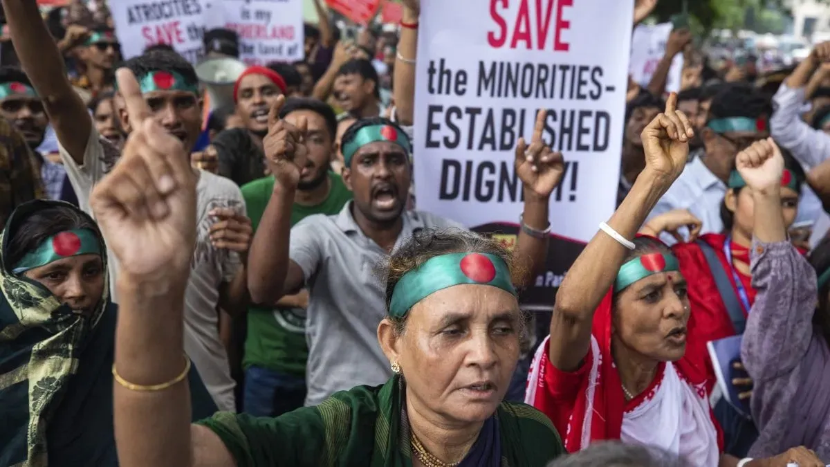 Hindus in Bangladesh's capital, Dhaka, have taken to the streets to protest against escalating attacks and harassment by extremist groups. Speaking exclusively to INDIA TV, community members expressed frustration over the lack of protection from the government led by Mohammad Yunus, claiming that temples are being desecrated, religious practices disrupted, and their daily lives increasingly threatened.