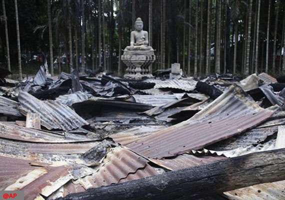 Cox's Bazar (Bangladesh), Oct 1: Thousands of Bangladeshi Muslims set fire to at least 10 Buddhist temples and 40 homes in anger over a Facebook photo of a burned Quran before authorities restored order.