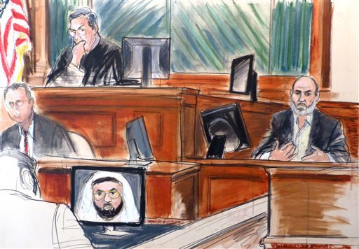 Also shown repeatedly to jurors were frames of a video made Sept. 12, 2001, that showed Abu Ghaith seated next to bin Laden and two other top al-Qaida leaders as they tried to justify the attacks.