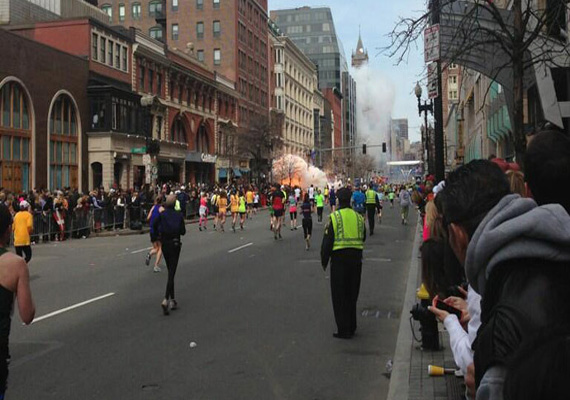 A few miles (kilometers) away from the finish line and around the same time, a fire broke out at the John F. Kennedy presidential library. The police commissioner said it may have been caused by an incendiary device but didn't appear to be related to the bombings.