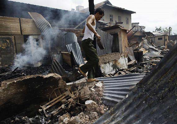 Thandwe, Myanmar: President Thein Sein traveled to Myanmar's conflict-torn west today as a new spate of sectarian violence gripped the state of Rakhine, with police saying Buddhist rioters killed a 94-year-old Muslim woman and torched more than 70 homes.