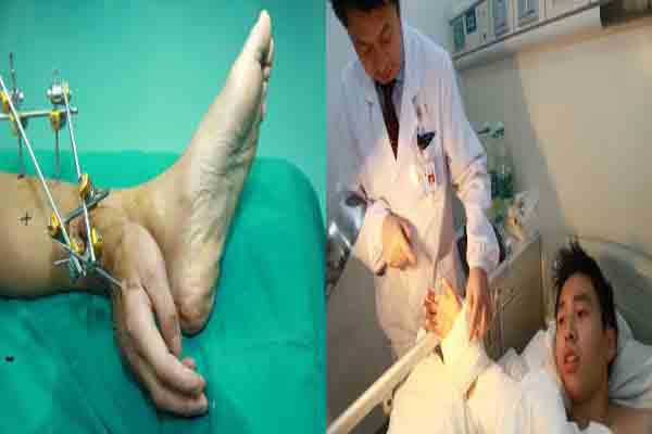 Doctors kept the hand alive by stitching it to his left ankle. Leg arteries leg were used as a blood supply.