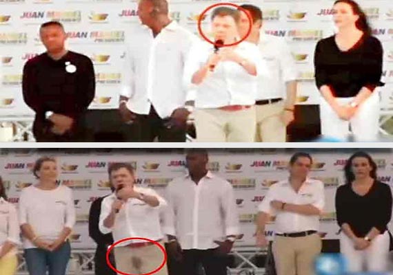New Delhi: Juan Manuel Santos' reelection campaign suffered a blow before it even took off on Sunday, after a video of the Colombian president involuntarily urinating on himself during a speech began to circulate early this week.