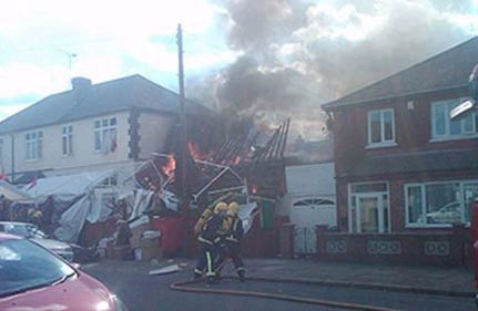 A gas cylinder blast caused a devastating fire destroying a portion of Hare Krishna Temple in Leicester, central England on Friday. There were no casualties.