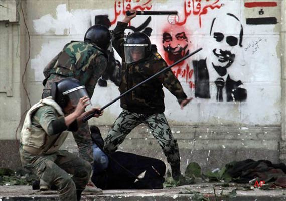 Cairo, Dec 18: Troops pulled women across the pavement by their hair, knocking off their Muslim headscarves. Young activists were kicked in the head until they lay motionless in Cairo's Tahrir Square.