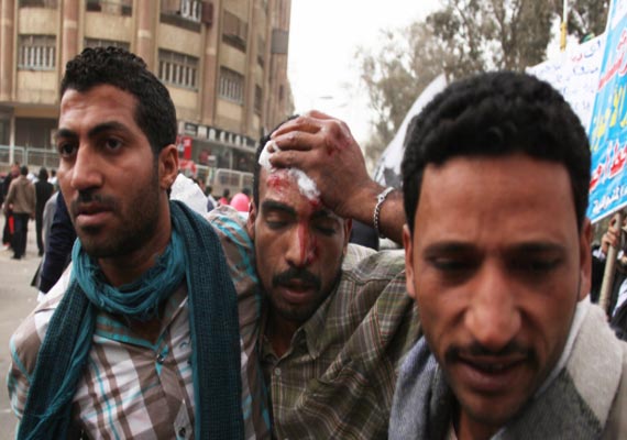 Several anti-Brotherhood protesters were also seen bloodied and being rushed to ambulances. Some covered their faces with black masks.