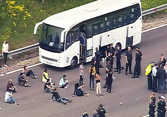 Armed police evacuated passengers from the bus and bomb disposal units, ambulances and fire engines descended on the Weeford toll plaza of the M6 highway in the West Midlands, 116 miles (187 kilometers) north of London, after the initial reports Thursday.