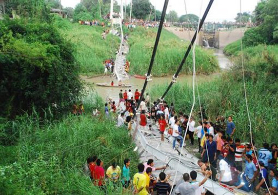 Many people were walking and riding by motorcycles across the 120-metre long bridge. The toll was expected to rise since more people were feared to have been trapped under the debris.