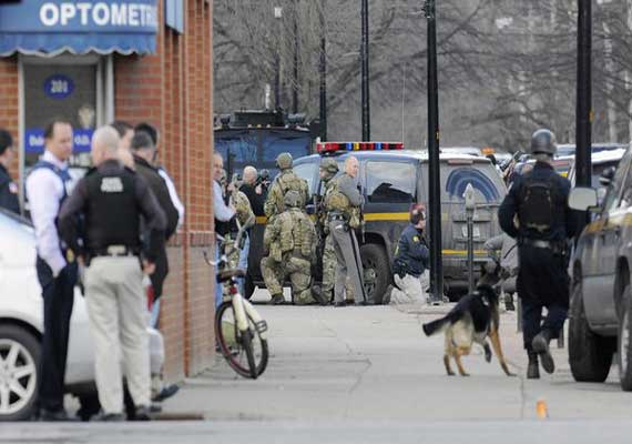 Police were also seen removing about six long guns from the building, but it was not clear if the guns belonged to the suspect.