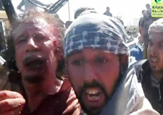 As the gruesome video shows, Gaddafi was taken alive and handled roughly. Whether he would have survived his wounds with better treatment is not known. One of his sons was also killed Thursday and another reported captured.