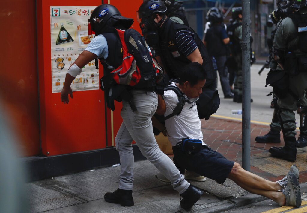 The protester was shot by an officer who opened fire with his revolver, a police official said, speaking to The Associated Press on condition of anonymity because he was not authorized to release information. While officers have previously fired warning shots in the air on multiple occasions during Hong Kong's monthslong anti-government protests, this is the first time a protester is known to have been shot.