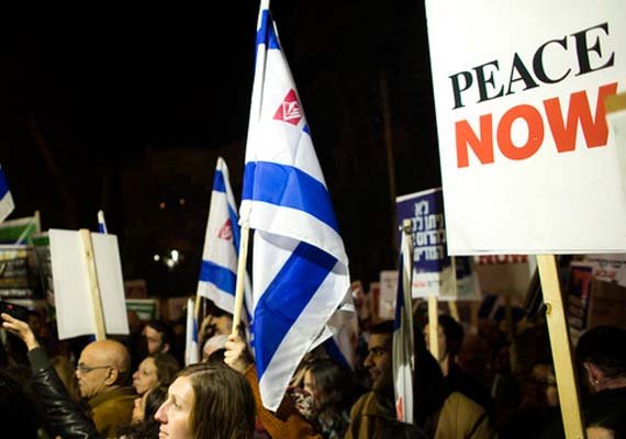 The rally was organised by Israel's Peace Now settlement watchdog and held across the street from the residence of Prime Minister Benjamin Netanyahu, yesterday night.